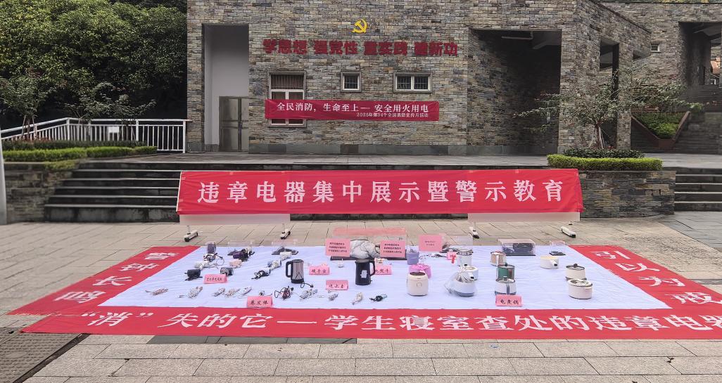 11月9日是第34个全国消防日,11月份为全国消防宣传月,今年的主题是“全民消防,生命至上——安全用火用电”。为筑牢校园安全防线,强化师生消防安全意识与应急处置能力,学工部、安保部联合开展“一站式”学生社区消防安全宣传主题活动,同步开展违章电器集中警示教育,为全校师生送上一堂直观生动的安全必修课。