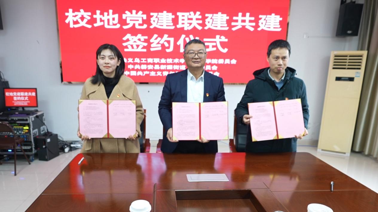 现场举行了“义乌工商职业技术学院创业实训基地”授牌仪式,随后三方代表共同签署党建联建合作协议,正式开启校地联动、党团共建、互利共赢的新篇章。