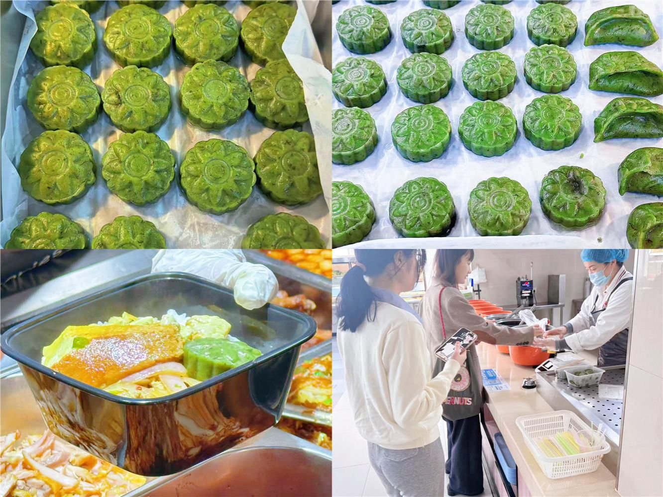 用餐时段,食堂内暖意融融,工作人员有序发放清明粿并送上“清明安康”的诚挚祝福。拿到清明粿的同学们笑意盈盈,纷纷表示,虽离家求学、身处异乡,但这份暖心美食不仅慰藉了乡愁,更让他们直观领略到清明民俗的独特魅力。