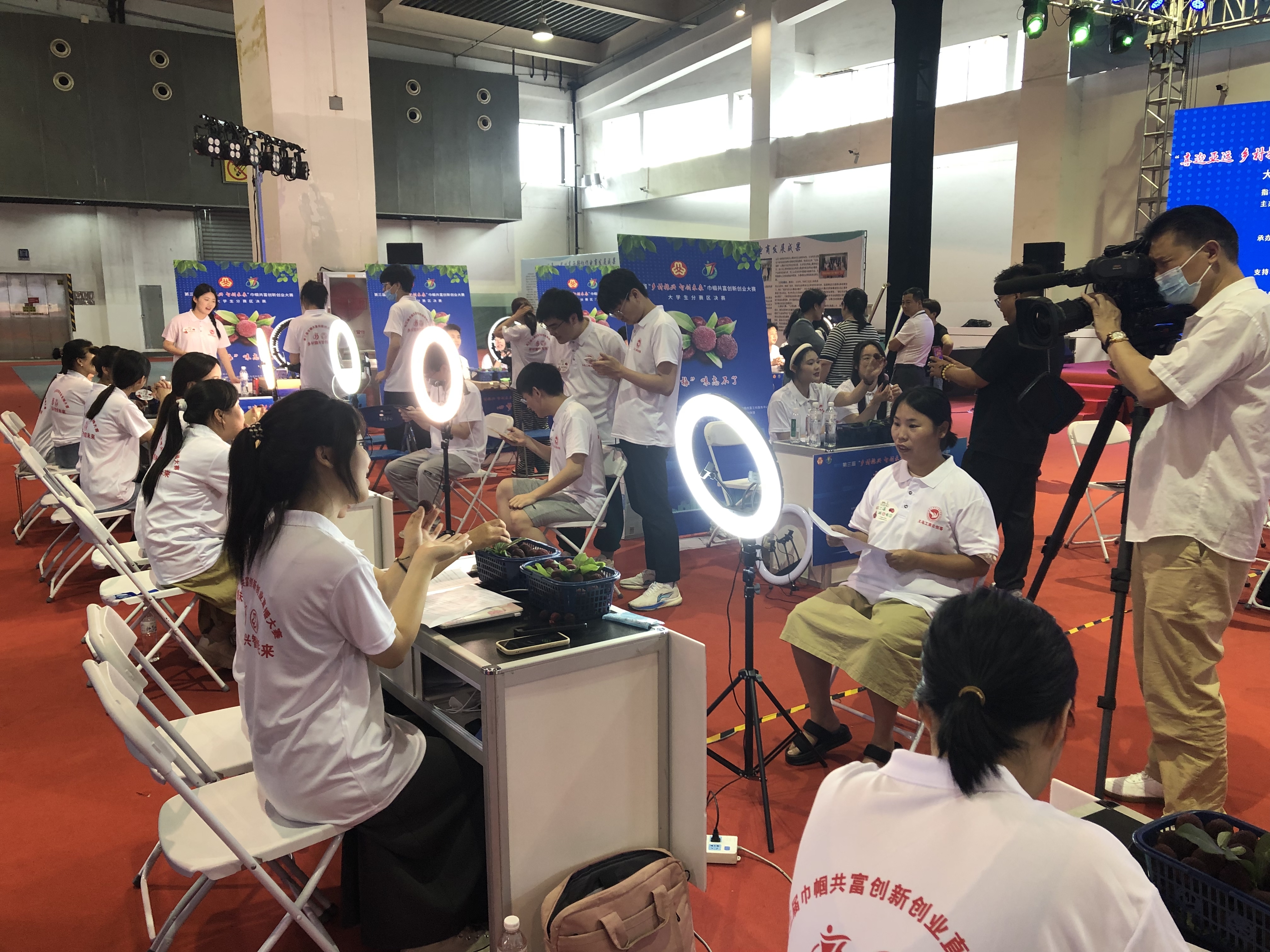 “本次大赛,不是简单的创新创业大赛,而是将大学生人才培养与乡村振兴直播+农户转型相结合的创新型大赛。”活动主办方相关负责人介绍,参赛的224名市场营销专业和电商直播专业大学生,在接受《直播营销实训》课程的学习后,前往兰溪市香溪镇为当地梅农开展短视频创作,并在抖音、快手、视频号上发布,宣传香溪杨梅,通过发布效果进行选拔。进入复赛的选手与果农结对,陪同果农一起学习水果的直播技巧。通过复赛期间大学生与果农的磨合和激烈角逐,最终有34名大学生、17名梅农和3名央代优选代表共同组建的18支农产品直播团队进入分赛区决赛。
