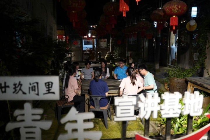 沿着村民口中的康庄大道—S210省道,实践团成员实地走访了省级民主法治村新光村,中国诗人小镇上河村,以“清境、亲乡、轻度假”为主题的朱宅、利民等村。围绕基层治理、环境整治、产业转型、乡村振兴等方面对当地村委、当地村民开展走访入户,并参观当地党群服务中心。此外暑期社会实践团在国家级乡村旅游创客示范基地“廿玖间里”开展理论宣讲,从一枚小小的中国结系到“浦江经验”,让村民们体会二十年来乡村发展变化,也让同学们走进基层做好实践。