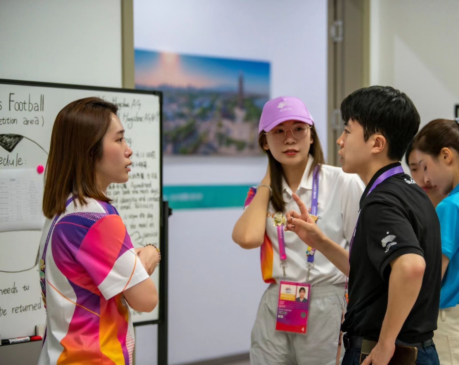 “亚运会不仅是亚洲人民的盛会,还受到全世界的关注。作为亚运协办城市之一,有各国记者汇聚金华,给媒体运行带来不小的挑战。”金华体育中心场馆群运行团队媒体负责人介绍,媒体服务团队是个平均年龄不到30岁的年轻团队,一半人有硕士学历,大部分人有出国留学的经历,可以提供多种语言服务。这个“语言天团”致力于向外籍记者展现金华赛区良好的服务风采,同时也进行友善的文化交流。