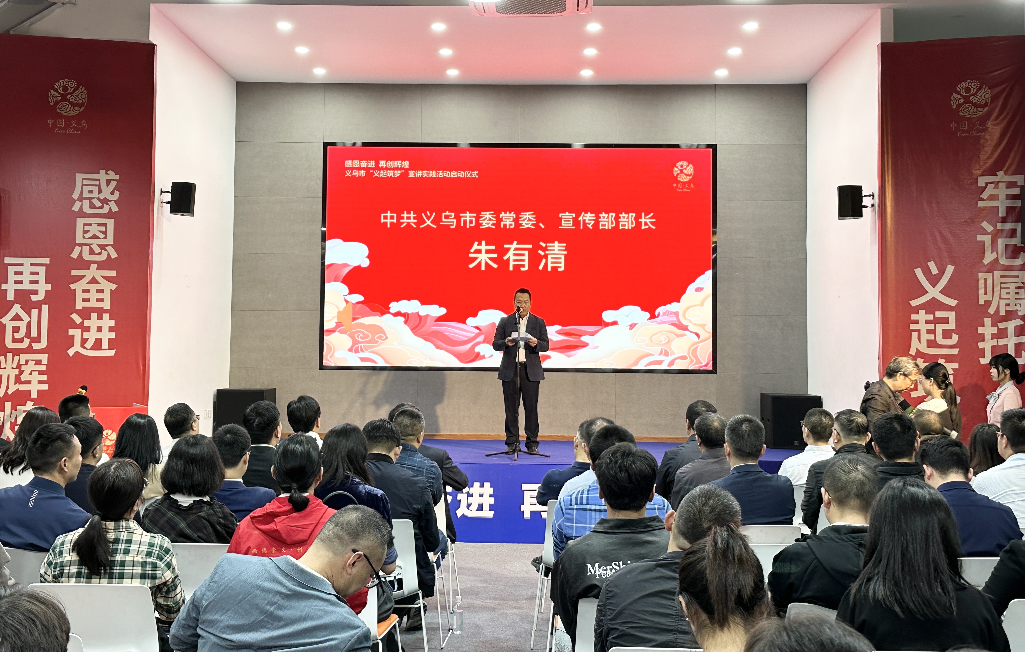 义乌市委常委、宣传部长朱有清作表示,宣讲实践活动启动后,要在学习上先人一步,深学细悟习近平总书记重要讲话精神和重要指示精神中蕴含的信仰力量、道义力量、实践力量和创新力量,做到学思用贯通、知信行合一;要在发动上快人一拍,通过广泛宣传宣讲,营造浓厚学习宣传贯彻氛围,推动习近平总书记重要讲话精神和重要指示精神传入万企万商万户,讲在地头店头心头;更要在效果上胜人一筹,扎实推进“同步协调集中讲、领导干部带头讲、多维联动矩阵讲、阵地走亲互动讲、循迹溯源蹲点讲”五大重点举措,全市各镇街各部门要认真把自己摆进去、把工作摆进去、把职责摆进去,推动广大人民群众深刻学习领会、准确理解把握习近平总书记的重要指示精神,坚定不移朝着世界小商品之都勇毅前行,奋力谱写中国式现代化义乌篇章。