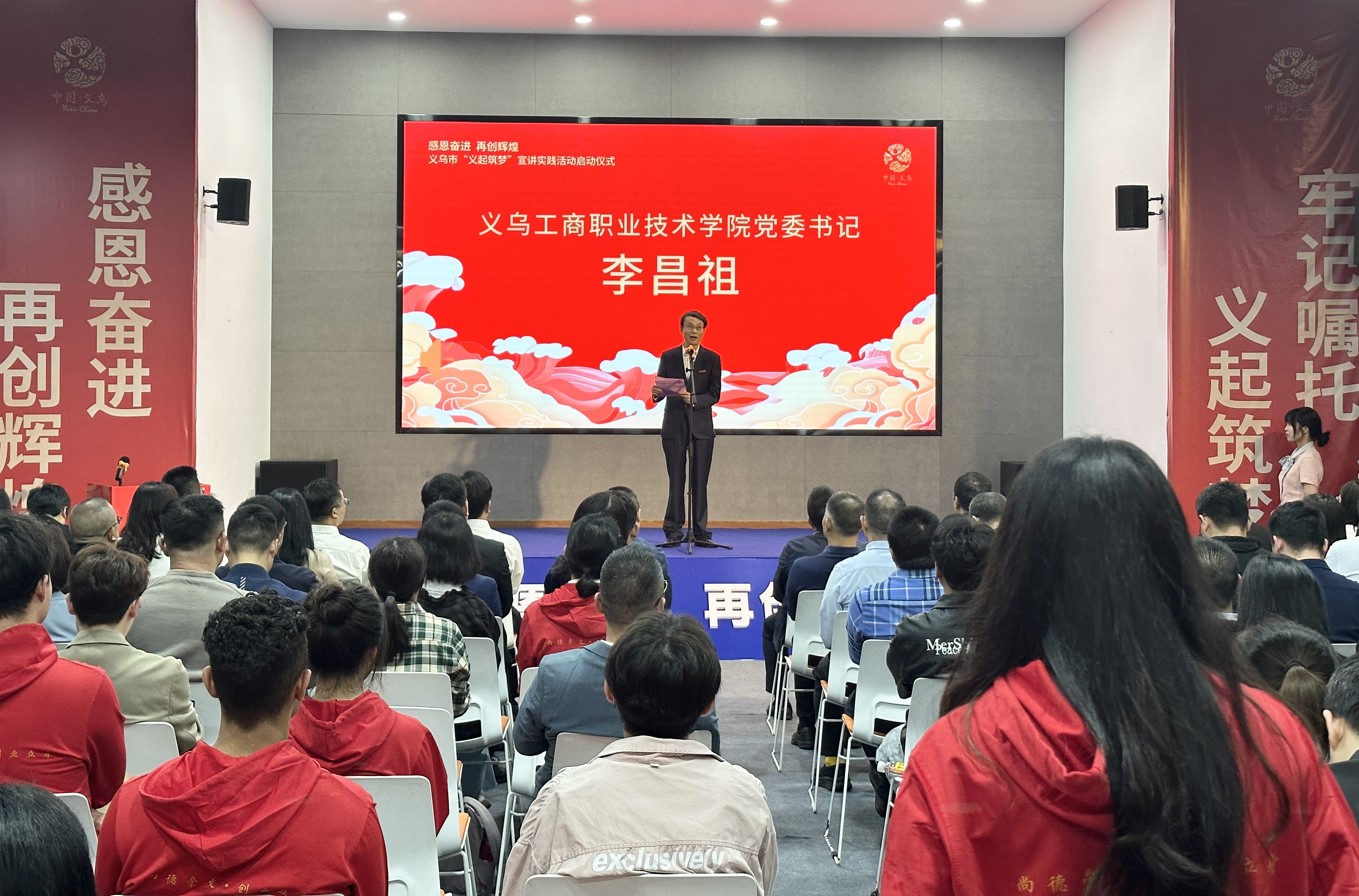 “在全市此次开展‘感恩奋进 再创辉煌’大宣讲活动中,学校主动谋划、行动在前,同步启动‘义起筑梦’系列宣讲实践活动,将义乌各项政治优势内化为学校‘大思政课’的资源优势,面向全市各基层打造一批大思政课实践教学基地,创作一批受群众学生喜爱受益的‘筑梦’大课堂,联动学校内外‘义起筑梦’,助力义乌发展。”李昌祖说。