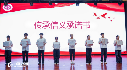 随后,活动现场举行信义承诺书传承仪式。新生代表从老生代表手中接过信义承诺书,传承好学院的信义文化精神。2025级市场营销专业新生季海林说:“作为刚入学的新生,今天从学长学姐手中接过信义承诺书,感觉就像接过了一份沉甸甸的责任,往后我会把守信落实到小事里,和大家一起做学院‘信义’文化的践行者。”