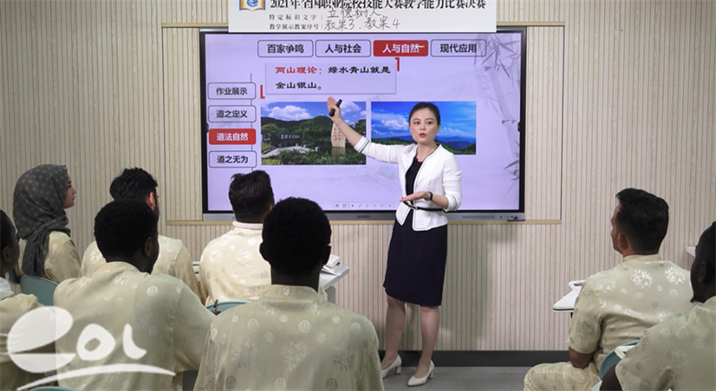 在王赛君看来,教学是立教之本,掌握语言能力和教学技能对国际学生的培养至关重要。2021年,她参与全国职业院校技能大赛教学能力比赛,《中国概况》教学团队获一等奖,取得该项比赛的历史性突破。