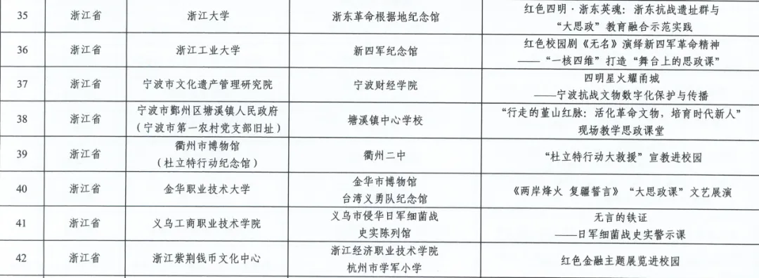 近年来,省文物局持续引导全省革命纪念场馆做好革命文物融入“大思政课”建设工作,推出“南湖·1921”红色话剧、“解码革命文物 传承浙里精神”红色双语系列思政课等系列大思政课产品,全省共涌现出187个馆校协同的大思政课案例,其中2个列入国家文物局、教育部联合公布的大思政课示范项目名单,18个列入精品项目名单,2个入选全国文化遗产旅游“百强案例”。