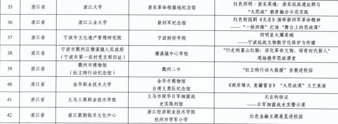 近日,教育部、国家文物局公布了以中国人民抗日战争暨世界反法西斯战争胜利80周年为主题的大中小学“大思政课”优质资源建设推介项目名单。其中,浙江8个项目入选精品项目名单(100 项)。